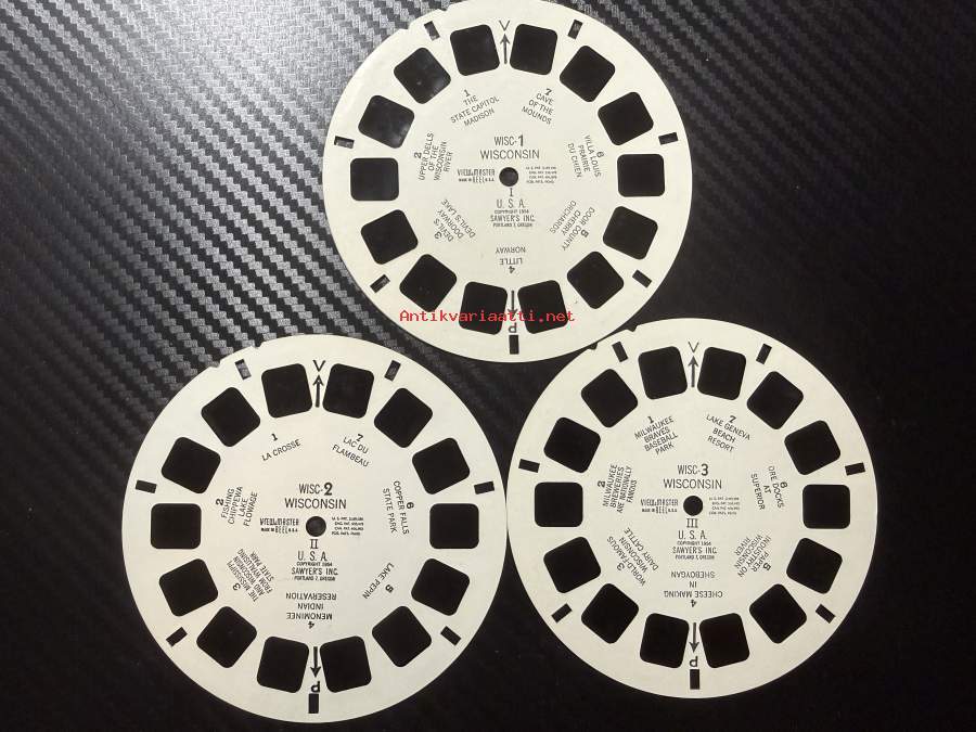 View-Master – Wisconsin (U.S.A.) – WISC-1 / WISC-2 / WISC-3 – reel / kuvakiekko