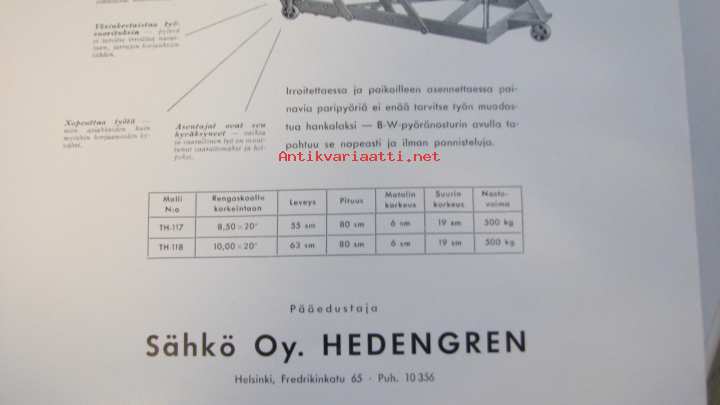 Paripyörien nosturi Sähkö Oy Hedengren myyntiesite