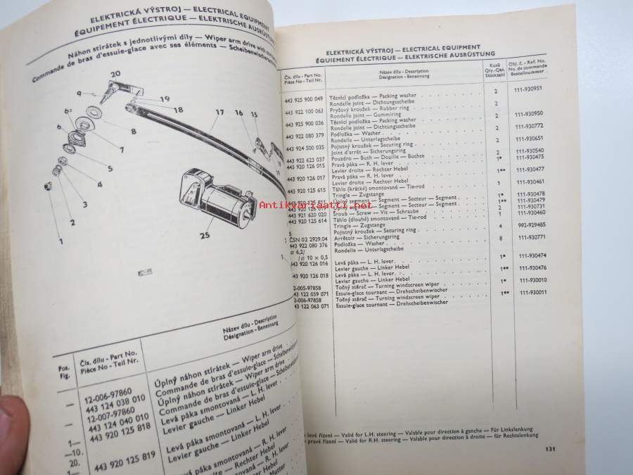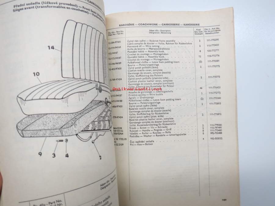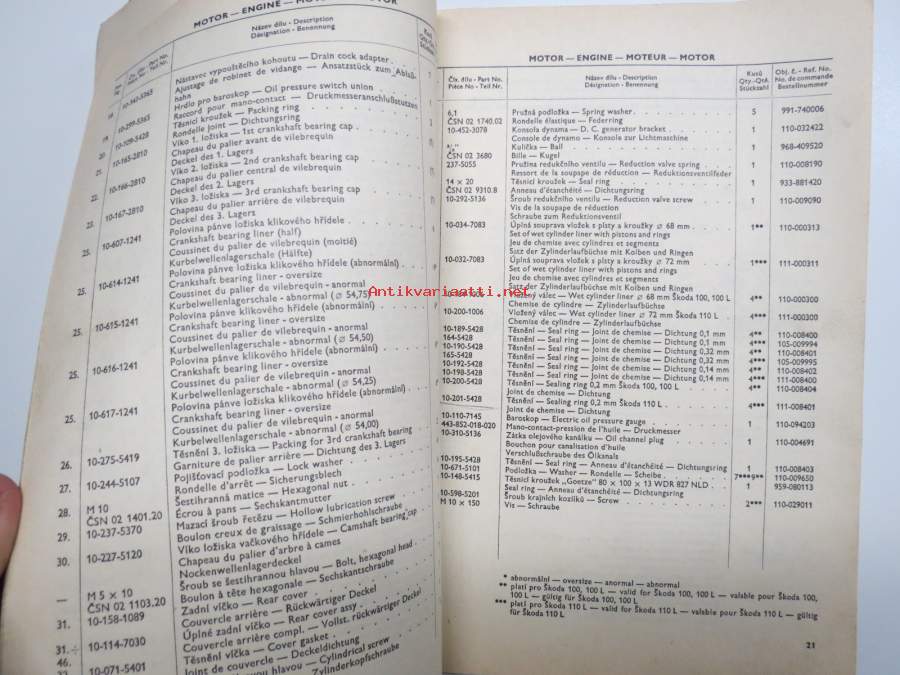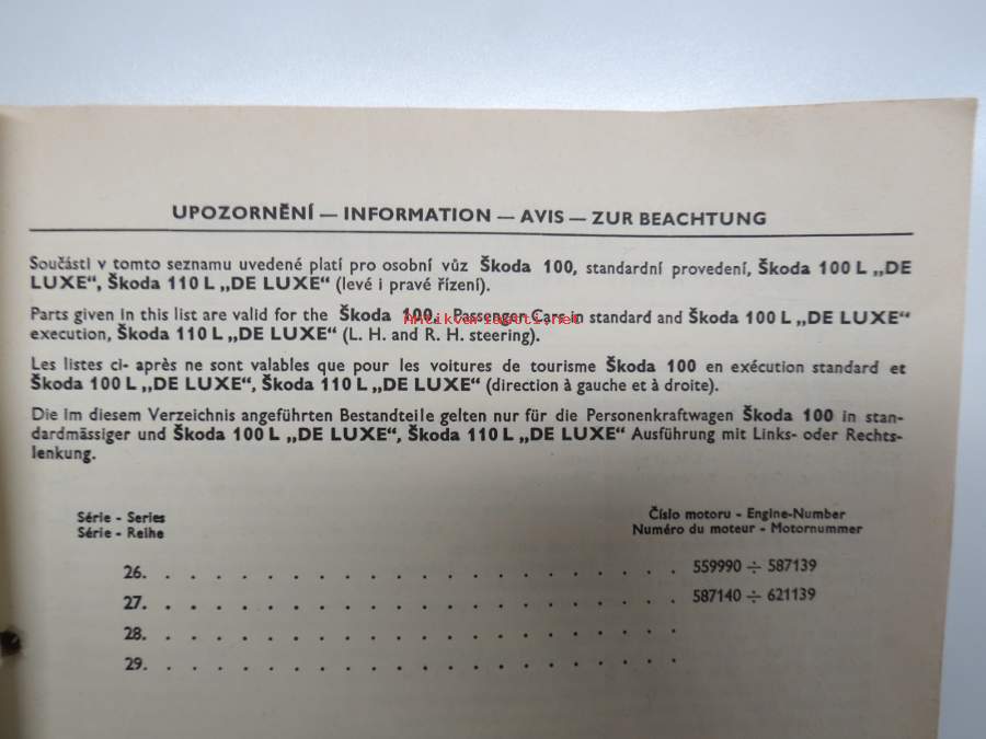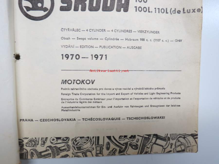 Skoda 100, 100L, 110L (de Luxe) 1970-1971 Seznam Nahradnich Dilu - List of Spare Parts - Catalogue des Åieces Détachees - Ersatzteile Katalog -varaosaluettelo