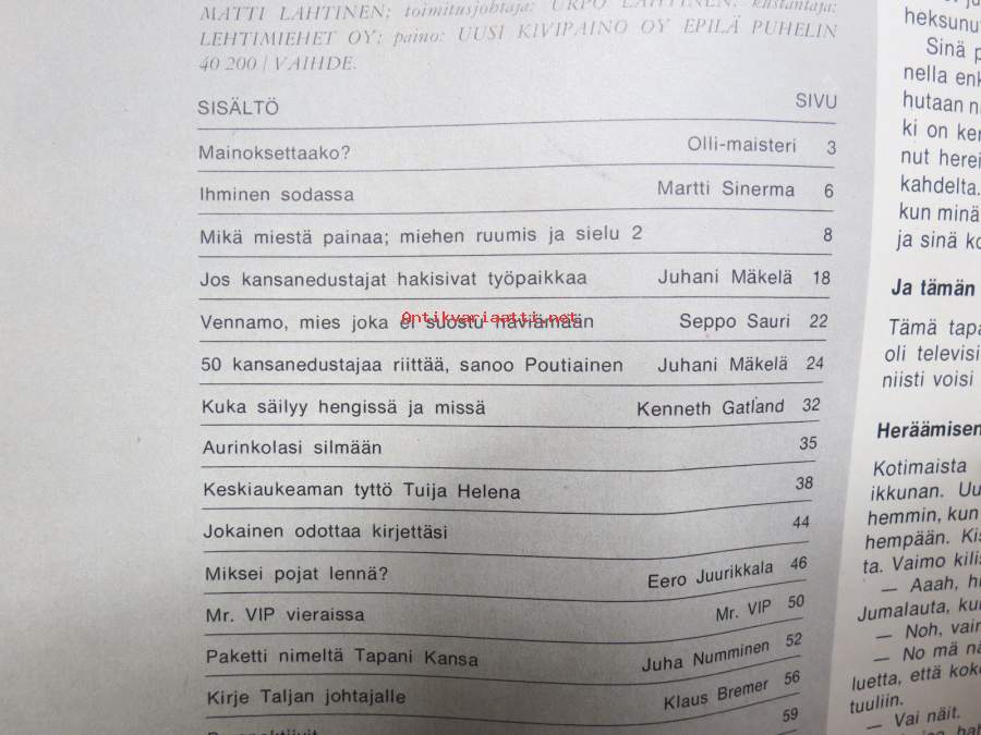 Vip 1971 nr 2, Harri Piitulainen urasi on ohi, Playboy - Hujgh Hefnerin valtakunta, Pekka Herlin, Homeros vai viinapullo,Ruostsi ryösti Suomen Saabin, Alaston totuus Näytä