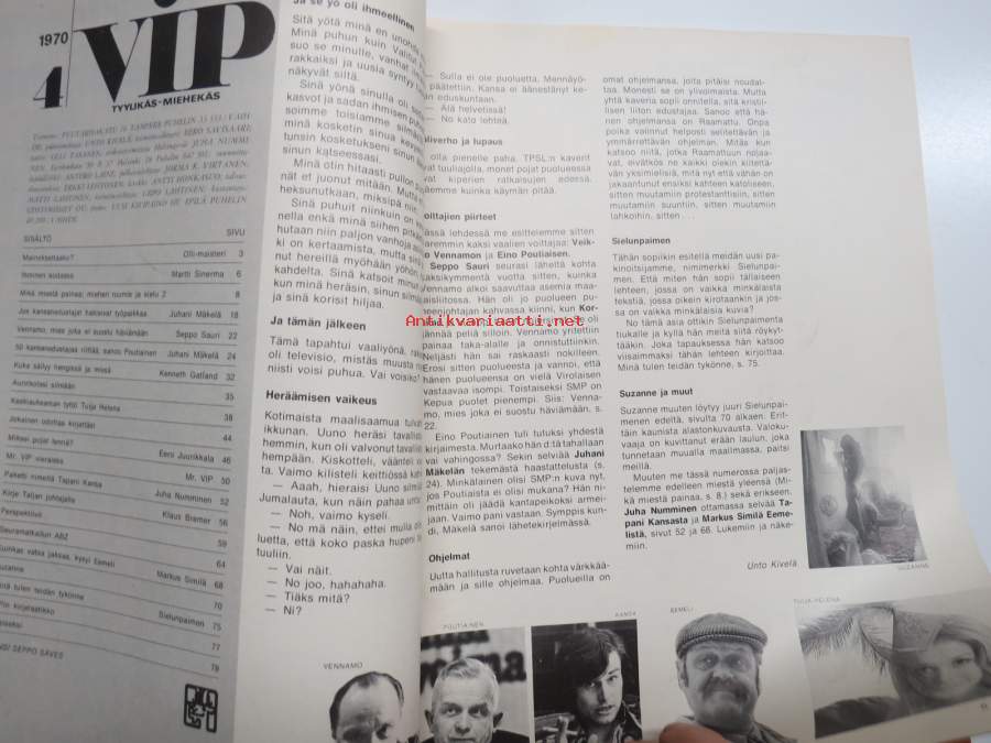 Vip 1970 nr 4, Miehen ruumis ja sielu, Veikko Vennamo, Taiteilijaoptikko Pekka Grönroos, Tuija Helena Sahlman (Joensuu) 17-v poseeraa, Tapani Kansa, Eemeli, ym. Näytä