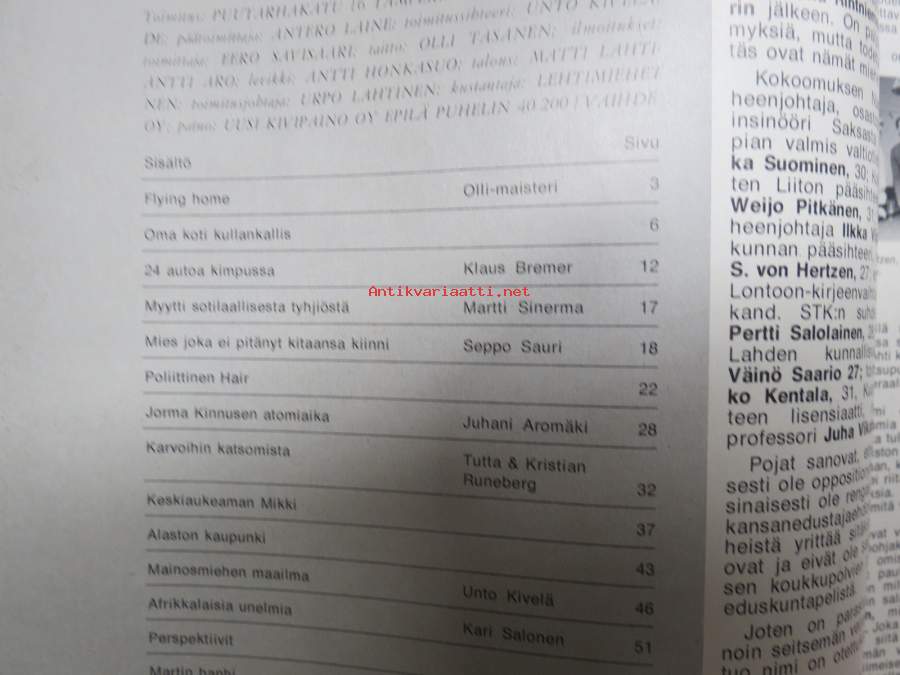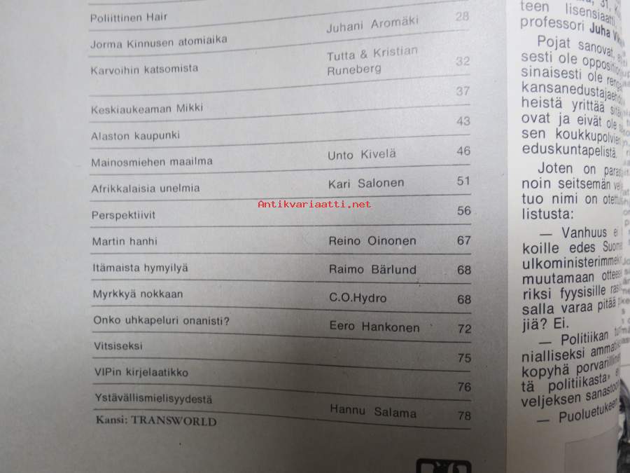 Vip 1971 nr 2, Harri Piitulainen urasi on ohi, Playboy - Hujgh Hefnerin valtakunta, Pekka Herlin, Homeros vai viinapullo,Ruostsi ryösti Suomen Saabin, Alaston totuus Näytä