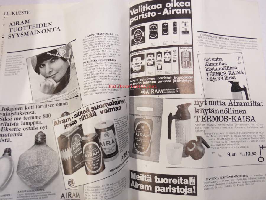 Airam Valo 1969 nr 3 -sähkö- ja valaistusalan asiakaslehti tukku- ja vähittäiskauppiaille, artikkeli mm. Tapiolan valoisa iltamaisema, Wirkkala kristallilamppumainos Näytä