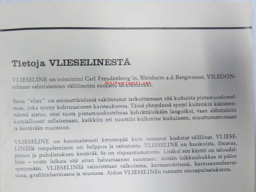 Ompele Vlieselinellä -välikangas, käyttöohje