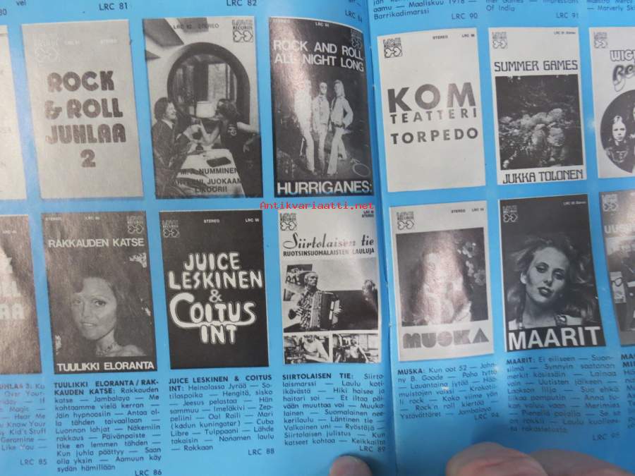 Love Records / Eteenpäin / Mellow Music / MNV / Ampex / Coronet musiikkikasetit 1975 -myyntiesite, kuvattu kansineen
