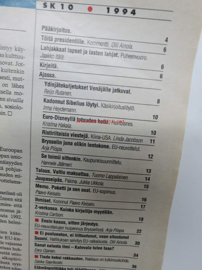 Suomen Kuvalehti 1994 nr 10, 11.3.1994, Romanttinen rakkaus, Kuljetukset Venäjälle jatkuvat, Seela Sella, Bryssel, Eero Paloheimo - Ekokylä, Schindlerin lista, ym. Näytä