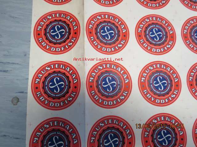 Maustekalaa / Västanfjärdin säilyketehdas -etikettiarkki