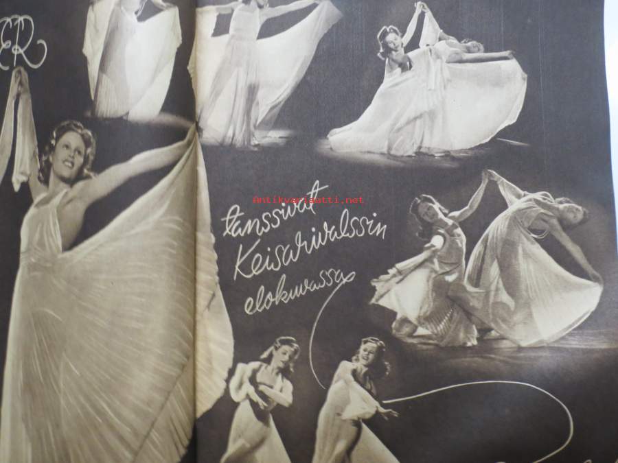 Suomi-Filmin Uutisaitta 1943 nr 3, Hedi ja Margot Höpfner tanssivat Keisarinvalssin elokuvassa, Ranskalaiset elokuvat, uusi Agfacolor-menetelmä, Neiti Tuittupää... Näytä