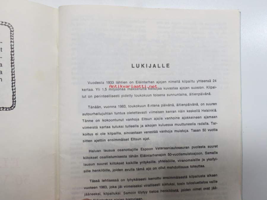 Eläintarjan 50-V. Muistoajo 1983 -käsiohjelma