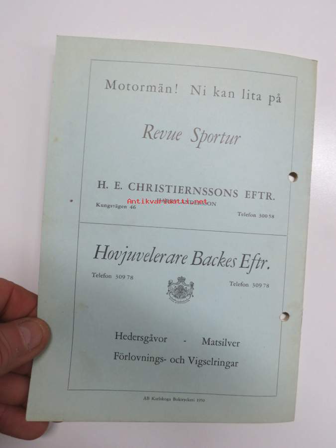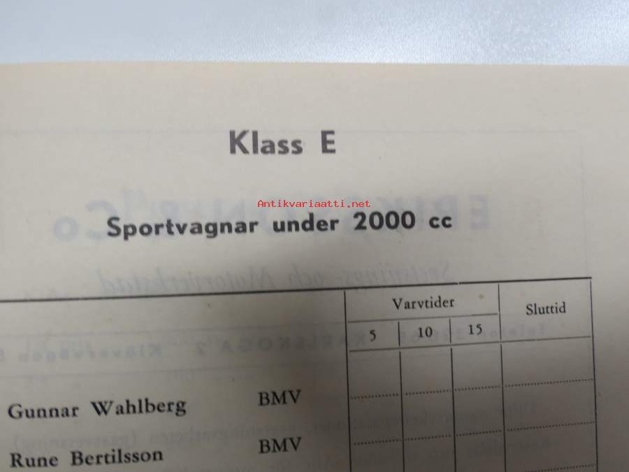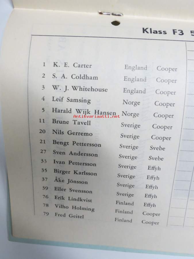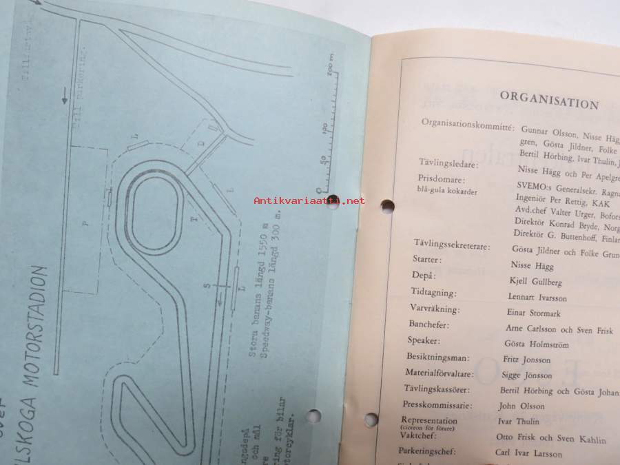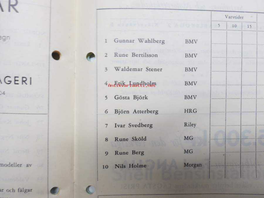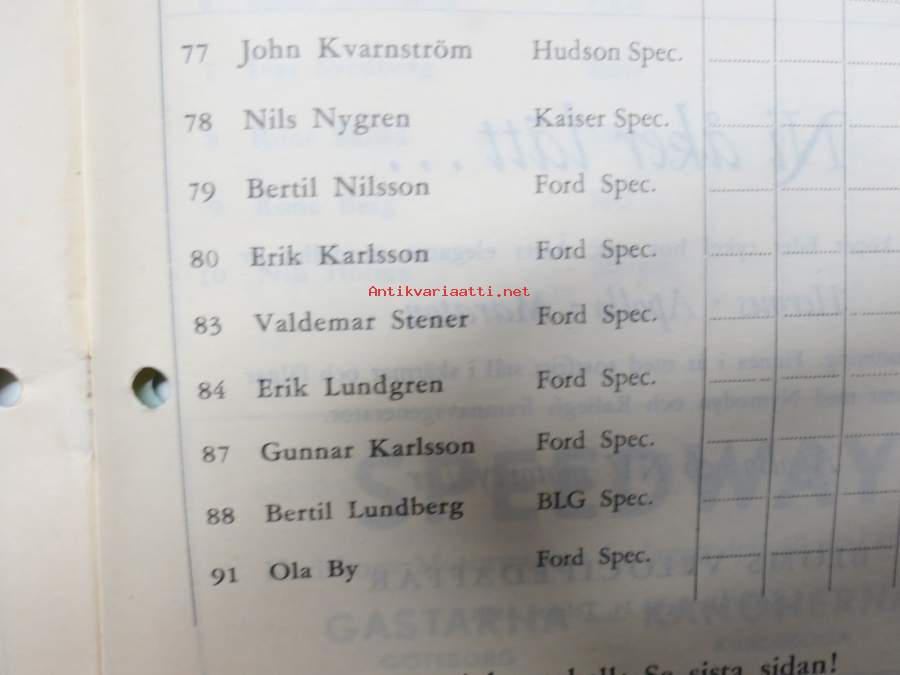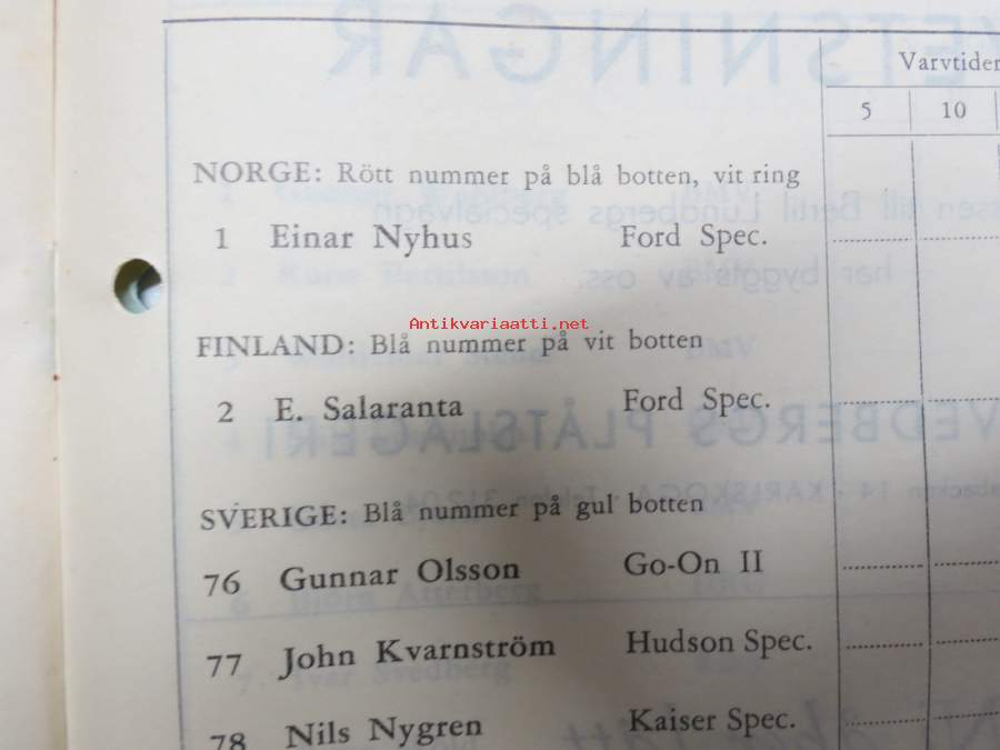 Flatenloppet 1950 -käsiohjelma, mm. suomalainen Evert Saloranta Ford V8 -vaunullaan osallistujana