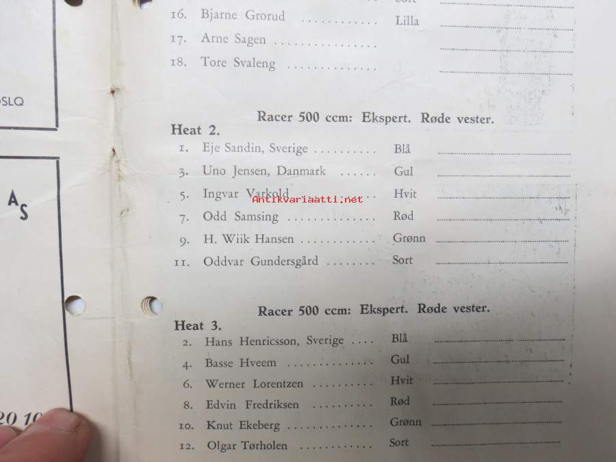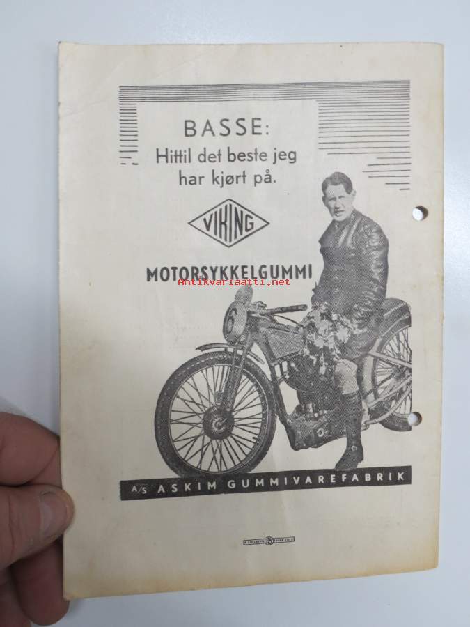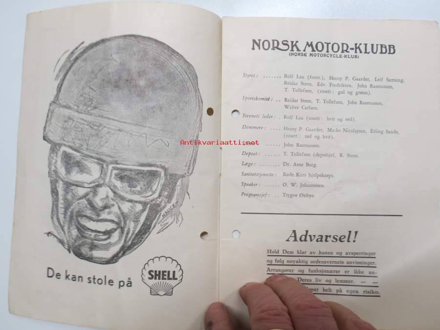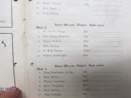 Bjerkebanen Motorcykkel- og bilrace 1950 -käsiohjelma, mm. suomalaiset Fred Geitel & Evert Saloranta Ford V8 -vaunullaan osallistujana