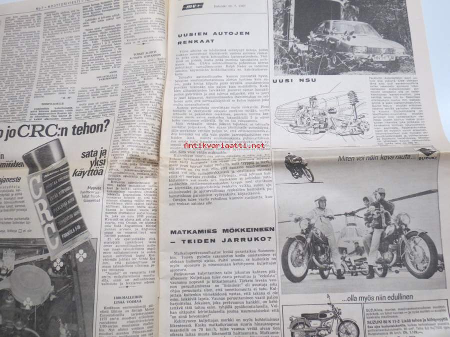 Moottoriviesti 1967 nr 7, Taunus 15 - Wartburg 1000 - Volvo 144 S kestotestiä, Anglia 1200 koeajo, Jawa 350 Automatic esittely, Matkamökki 350 asuntovaunu...