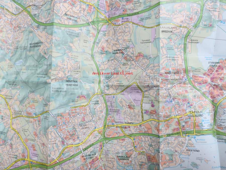 Espoo / Esbo + Kauniainen / Grankulla opaskartta 2000 + erillinen nimihakemisto kaduista yms. -guidekarta