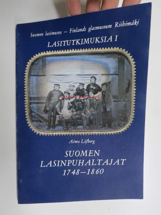 Aimo Löfberg - Lasitutkimuksia I - Suomen lasinpuhaltajat 1748-1860 (kansikuvan sommittelu Tapio Wirkkala)