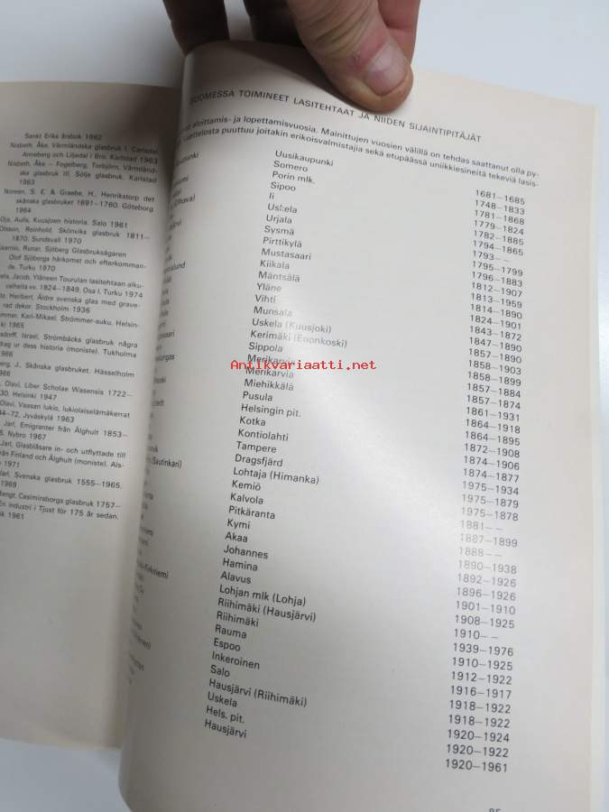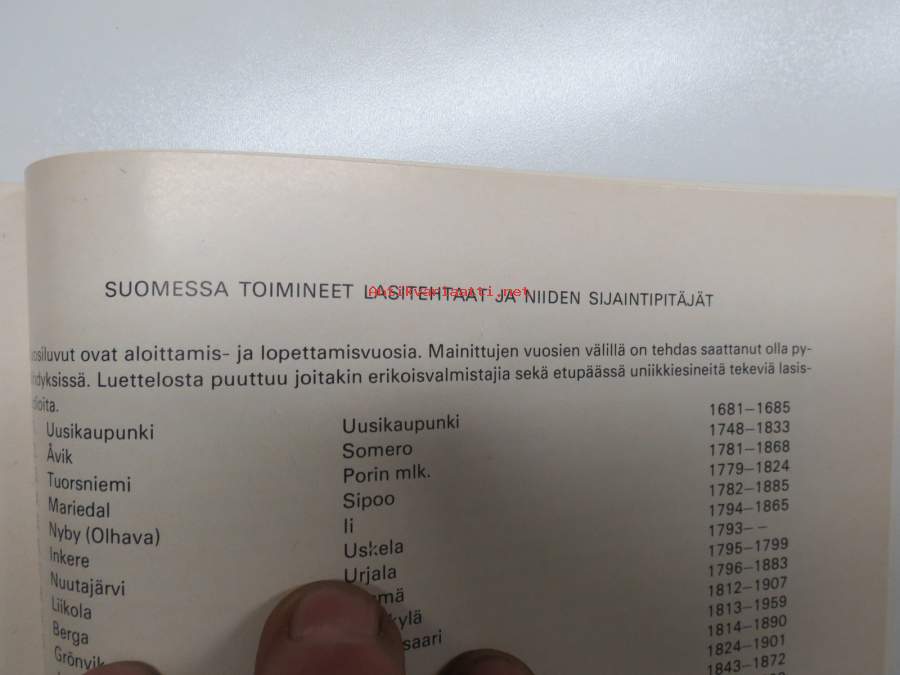 Lasitutkimuksia I - Suomen lasinpuhaltajat 1748-1860 (kansikuvan sommittelu Tapio Wirkkala)