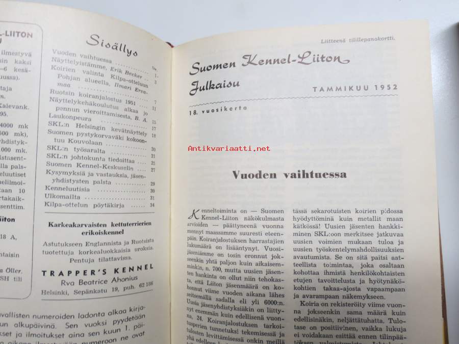SKL - Suomen Kennel-Liiton julkaisu (jäsenlehti) vv. 1952-1958 -sidotut vuosikerrta neljänä sidoksena