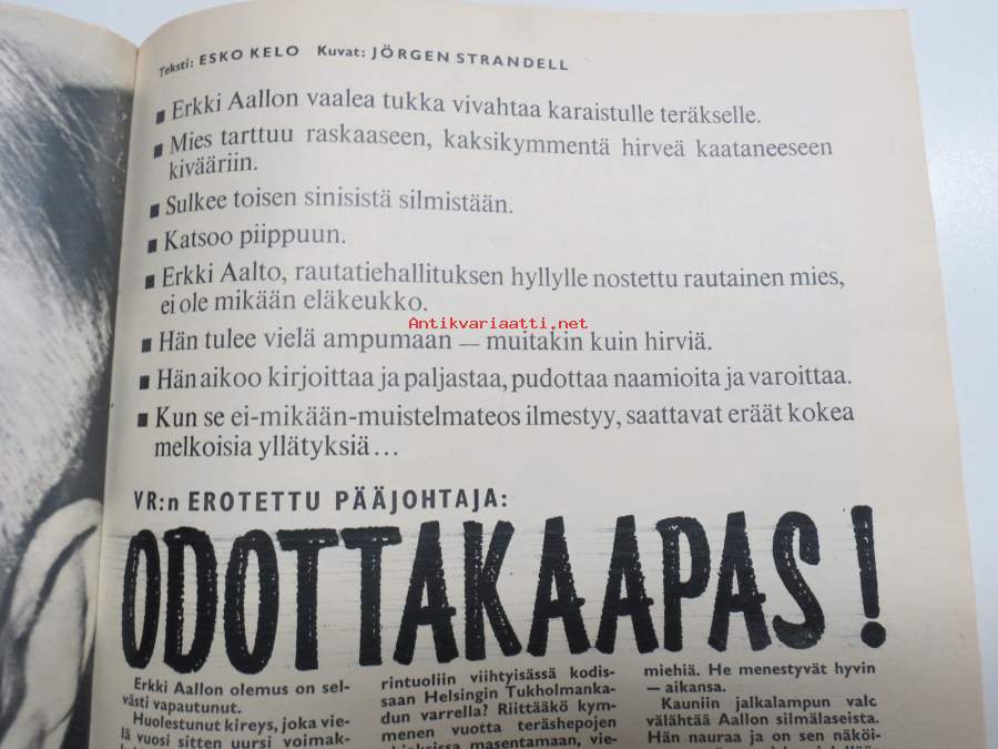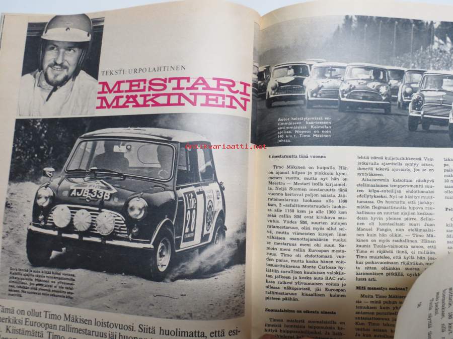 , Uskonto vaati uhrin, , Elvis on lihava ja vanha, Tontturallli - pelipohja keskiaukeaman, Tarva on terve, Alamaailma keskellä Helsinkiä - Lönkan lössi, Mestari Timo Mäkinen, Leskiäiti lapsineen kadulle Heinolassa, Vuoden Hymy-tytöt, ym.