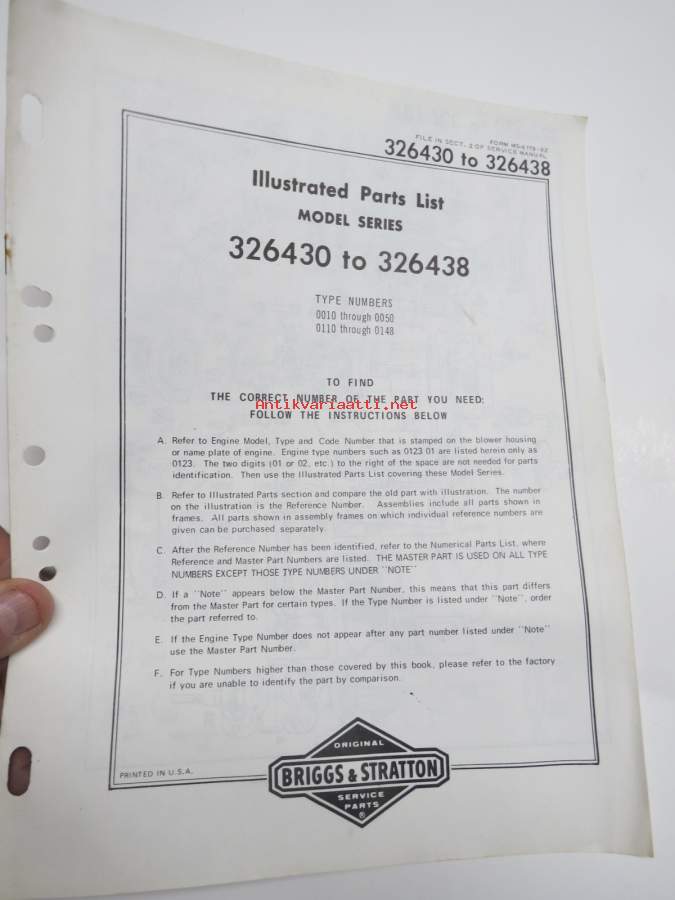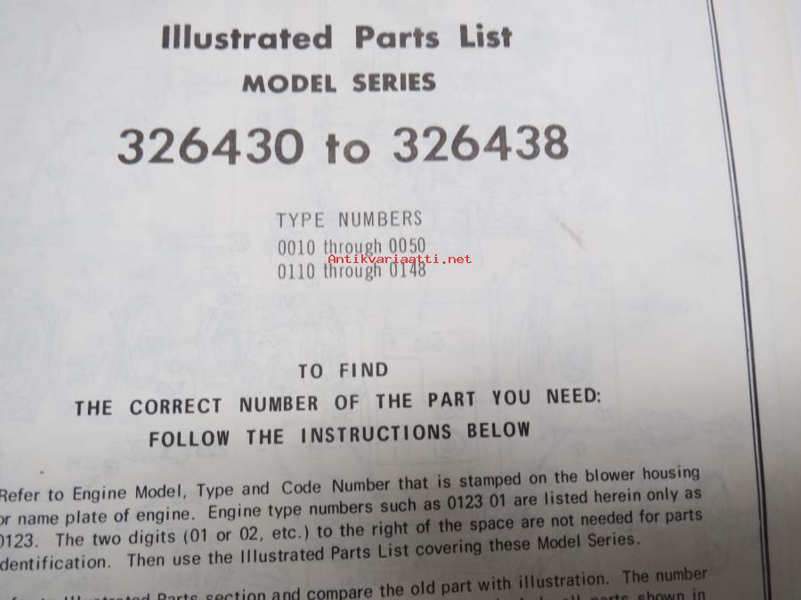 Briggs & Stratton Illustrated Parts List Model Series 326430 to 326438
