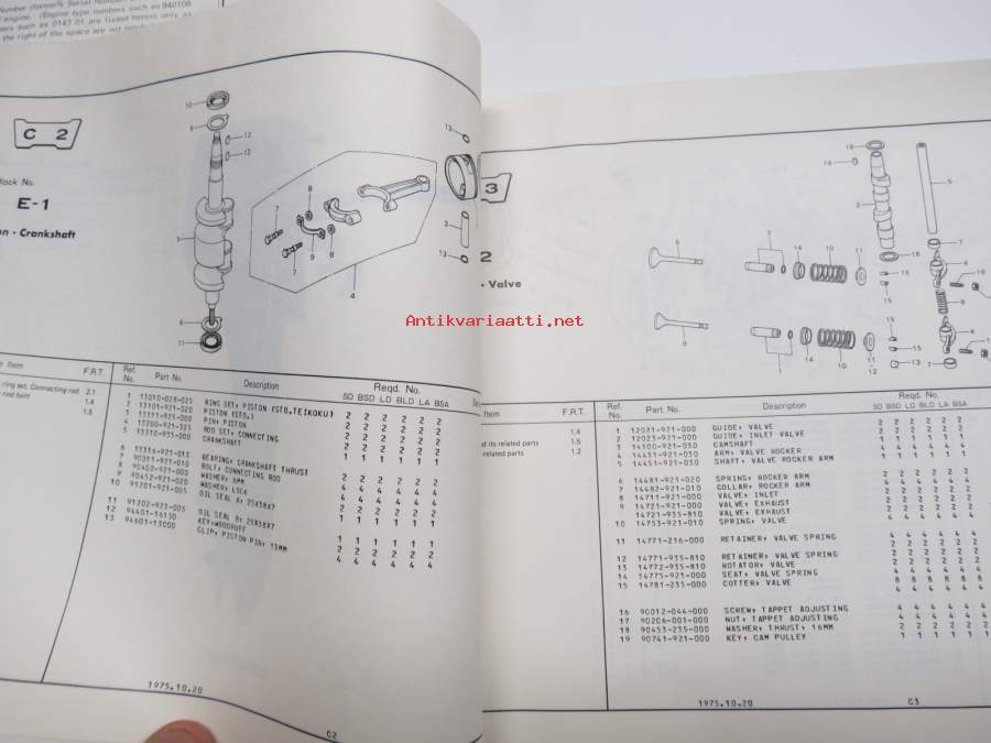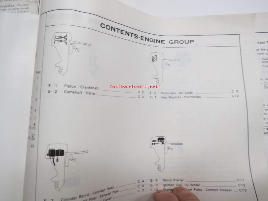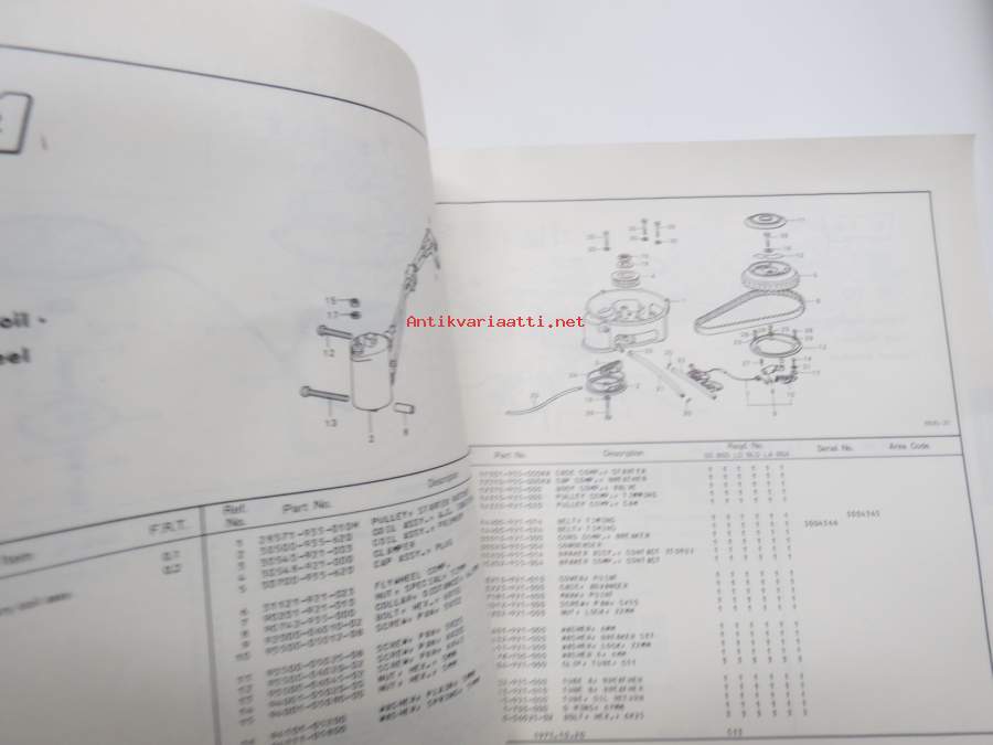 Honda B75K2 outboard parts list 1975, illustrations / perämoottori, varaosaluettelo räjäytyskuvineen