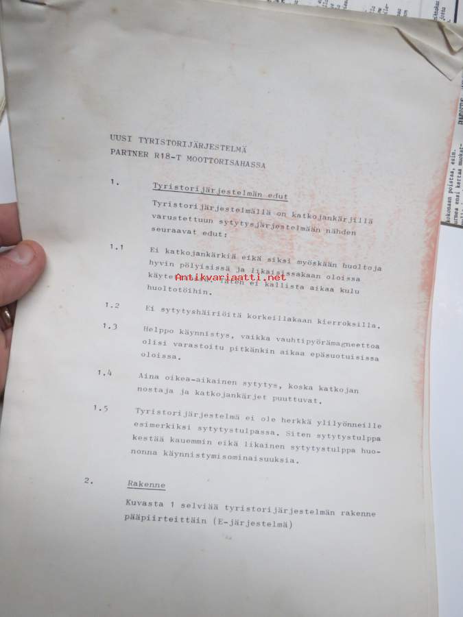 Partner R18T Uusi tyristorijärjestelmä -käyttöohje / selostus
