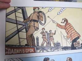 "Magnitogorsk, Uralmash, Baku 2, suunnitelmatalouden 5-vuotissaavutuksia" -neuvostoliittolainen propagandajuliste v. 1970