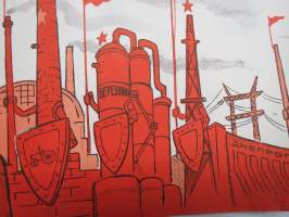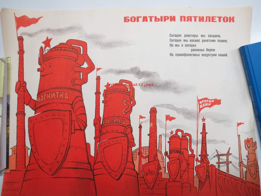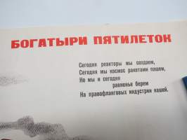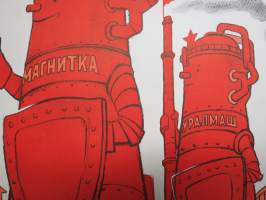 "Magnitogorsk, Uralmash, Baku 2, suunnitelmatalouden 5-vuotissaavutuksia" -neuvostoliittolainen propagandajuliste v. 1970