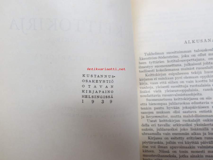Jenny Åkerström, suomeksi toimittaneet Kerttu Olsoni, Ida Pekari, Otava, 1939