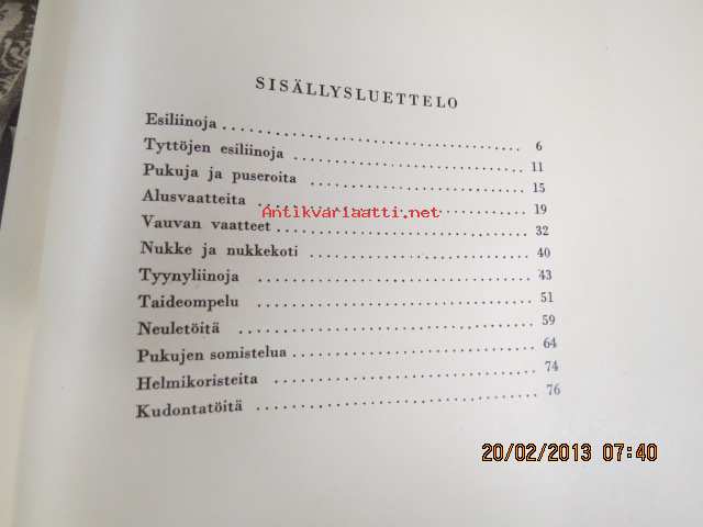 Toimittaneet Idi Lindholm, Anna Mesterton, Maire Mikkola, Aino Ollila, Martta Saarto, Irja Teerisuo, Helsingin käsityöopisto, 1949 18 x 25 cm.
