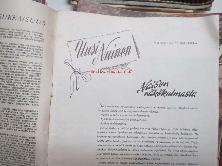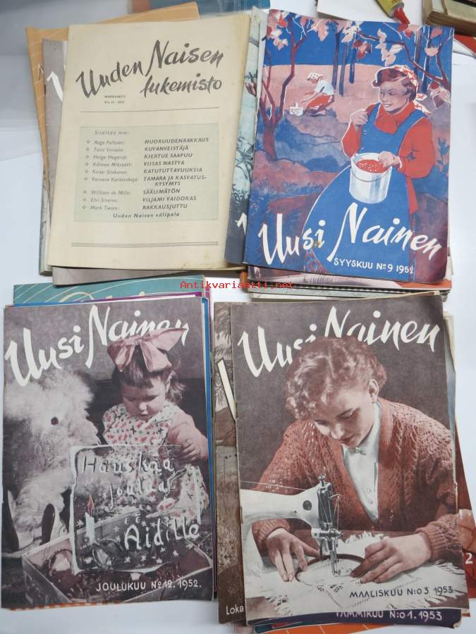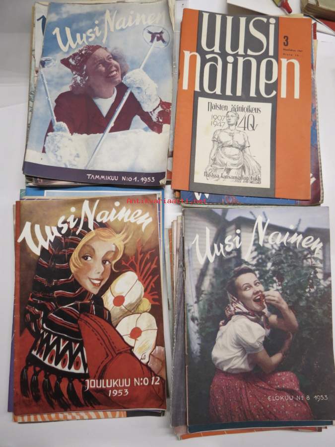 Uusi Nainen -lehtiä vv. 1950-55 noin 35 kpl erä, vasemmistolainen julkaisu, erinomaista ajankuvaa