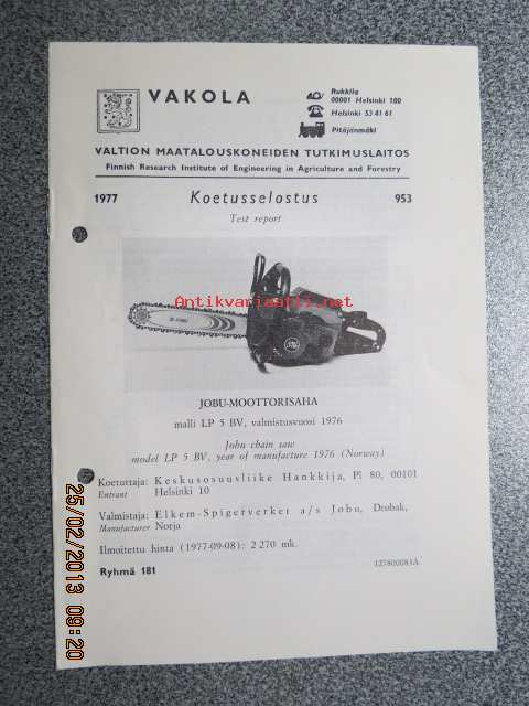 Jobu (Jo-Bu) LP 5 BV moottorisaha Vakola koetusselostus 1976