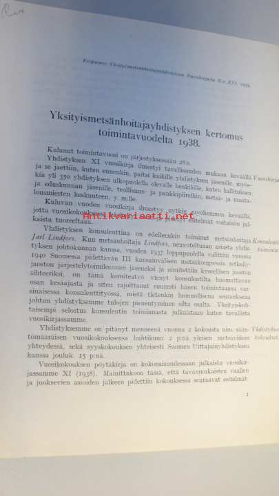 Yksityismetsänhoitajayhdistyksen kertomus toimintavuodelta 1938