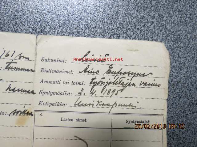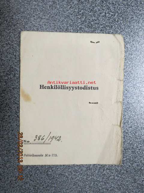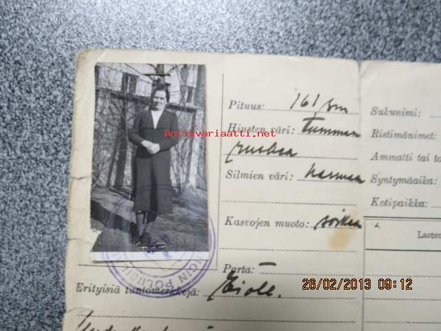 Henkilöllisyystodistus 11.9.1942 Aino Eufrosyne Leisiö