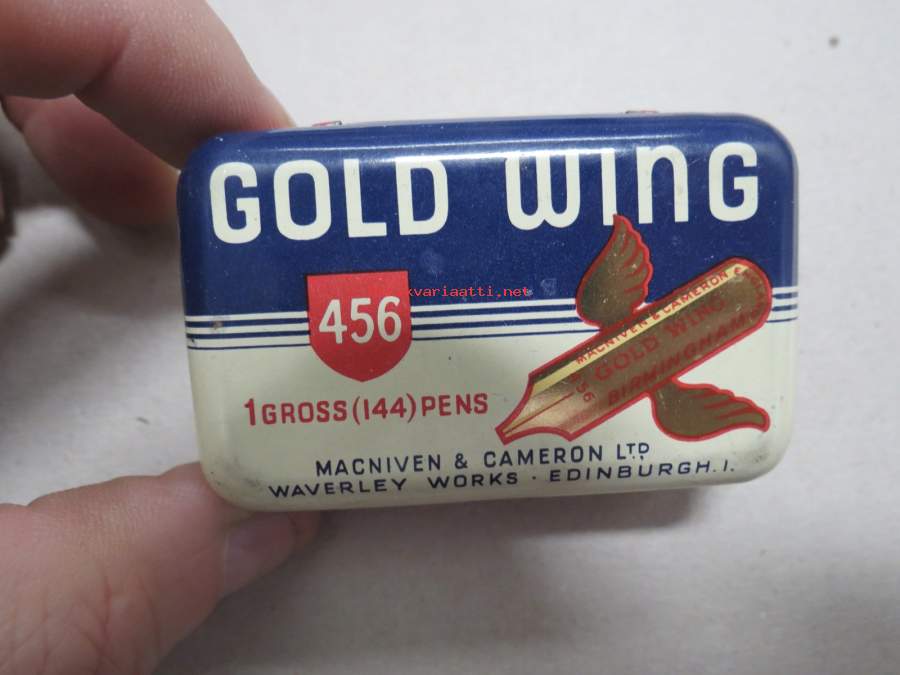 Gold Wing 456 pens - Macniven & Cameron Ltd (Waverley, Edinburgh I.) -mustekynän teriä, peltirasia
