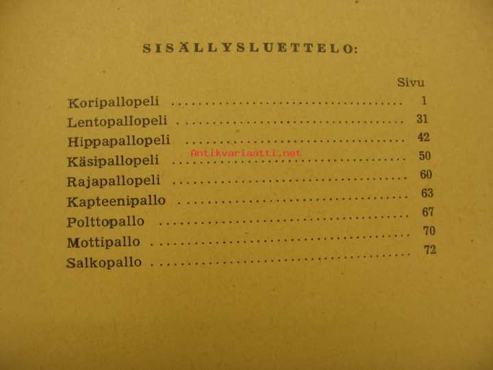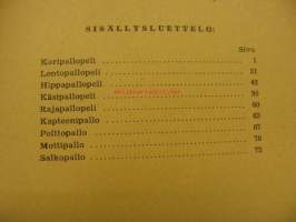 Vuosilukua ja julkaisijaa ei ole mainittu, arvio sodan jälkeinen aika. Sisällysluettelosta käyvät ilmi mukana olevat pelit. Mukava kirja vanhojen pelien ja leikkien ohjeiden säilyttämisestä kiinnostuneille.