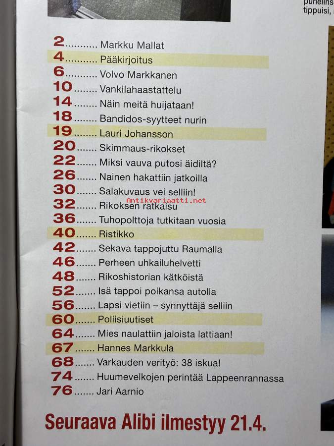 Alibi 2019 nr 10, katso sisällysluettelo
