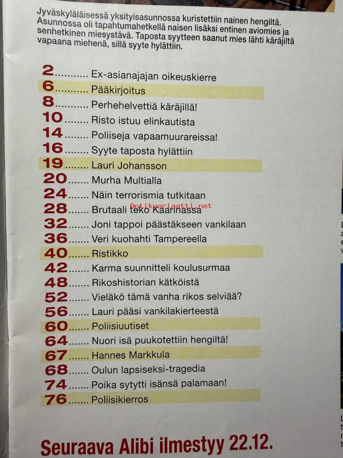 Alibi 2019 nr 12, katso sisällysluettelo