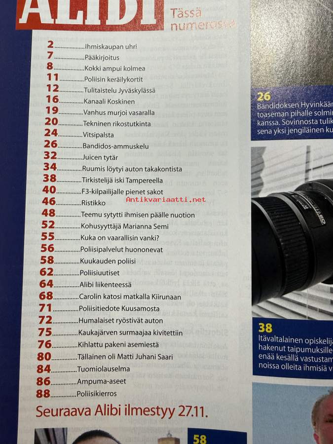 Alibi 2008 nr 7, katso sisällysluettelo