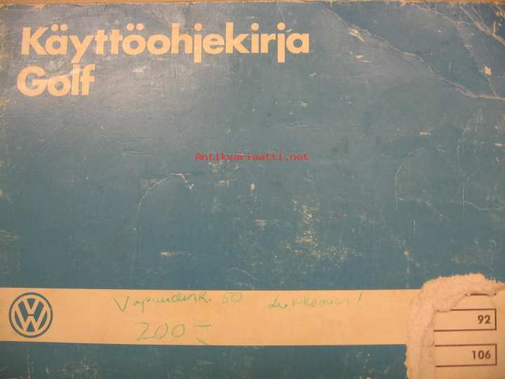 Volkswagen Golf vm. 1986 -käyttöohjekirja