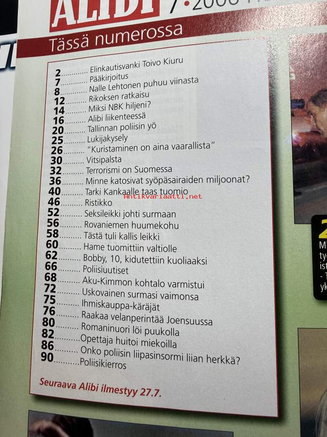 | Saatavilla | 1 kpl | | Julkaisuvuosi | 2006 | | Sivuja | 92 | | Kunto | K3 | | Sidonta/painoasu | Lehti | | Kielet | Suomi |