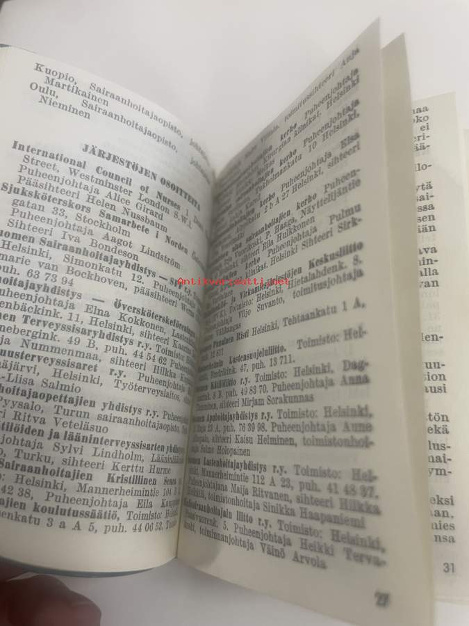 Suomen Sairaanhoitajaliitto kalenteri 1966