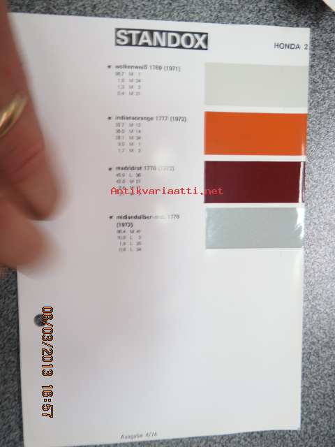 Standox Honda 2 värimallit 1973 lisäykset mallikirjaan