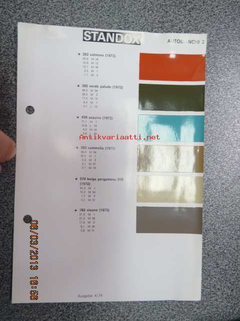Standox Autobianchi 2 värimallit 1973 lisäykset mallikirjaan