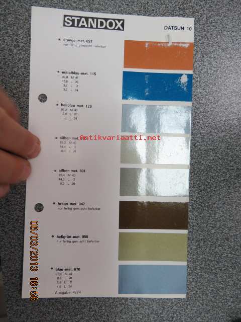 Standox Datsun 10 värimallit 1973/74 lisäykset mallikirjaan