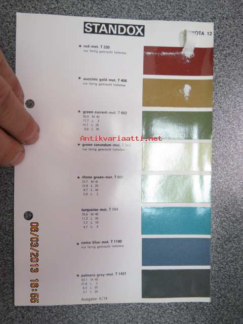 Standox Toyota 12 värimallit 1973/74 lisäykset mallikirjaan