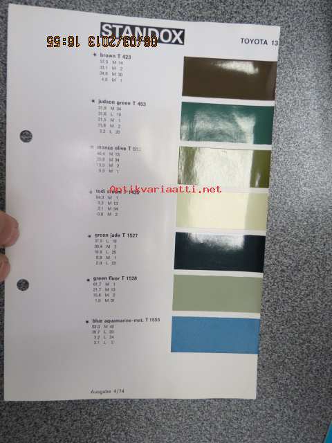 Standox Toyota 13 värimallit 1973/74 lisäykset mallikirjaan