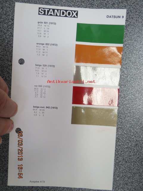 Standox Datsun 9 värimallit 1973/74 lisäykset mallikirjaan
