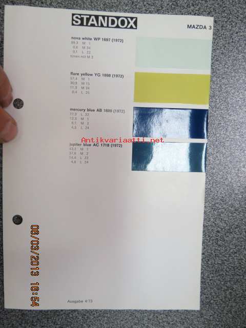 Standox Mazda 3 värimallit 1973/74 lisäykset mallikirjaan