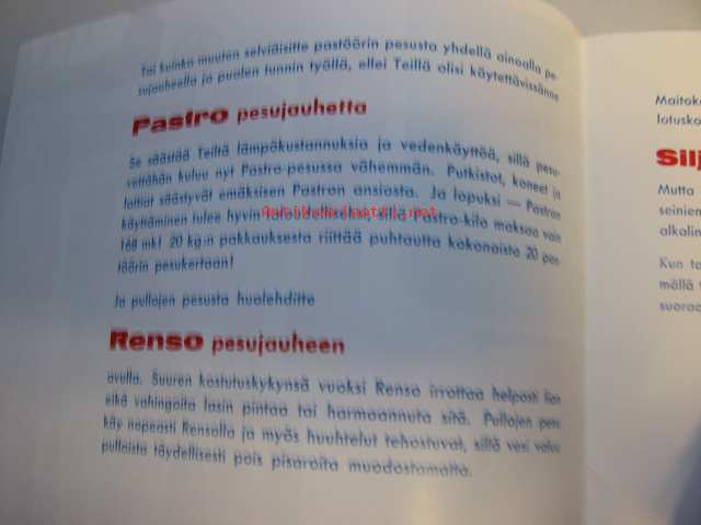 Pastro, Renso, Silja pesujauhe / Lumivalko Oy -mainos