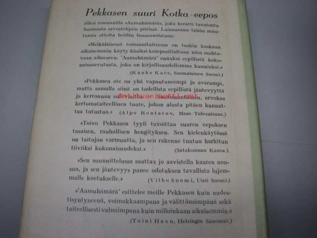 Saatavilla 1 kpl Julkaisuvuosi 1948 Sivuja 260 Painos 1 Kunto K3 Sidonta/painoasu Sidottu (kansipaperit) Kielet Suomi