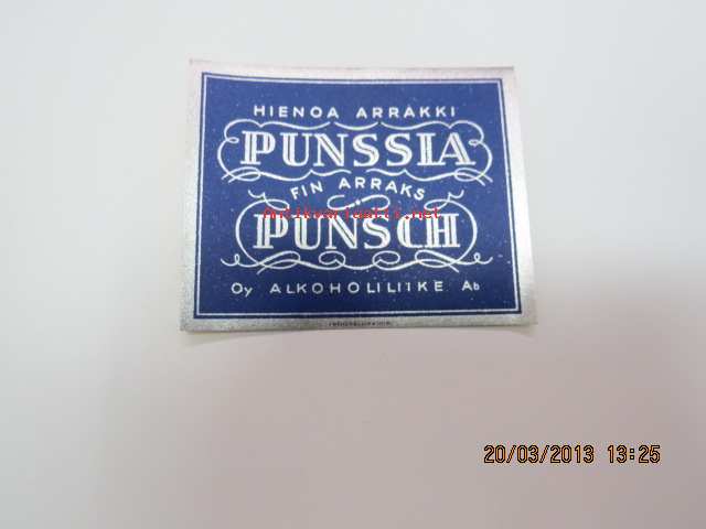 Hienoa Arrakki Punssia -viinaetiketti 1930-luvulta
